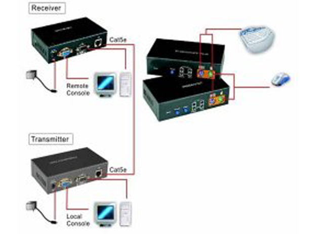 对一组PS/2电脑键盘、鼠标、显示器信号延长达150米